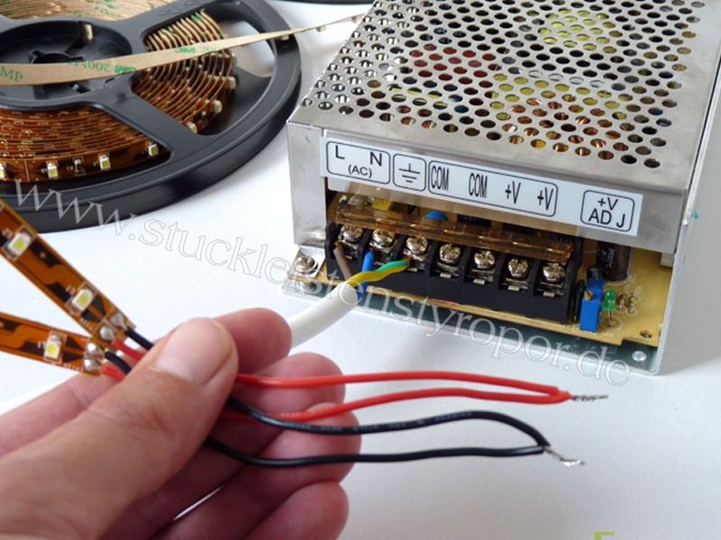 Montage von LED Strips mit dem 12 V Netzteil Adapter, wenn die LED Strips länger als 5 m sind