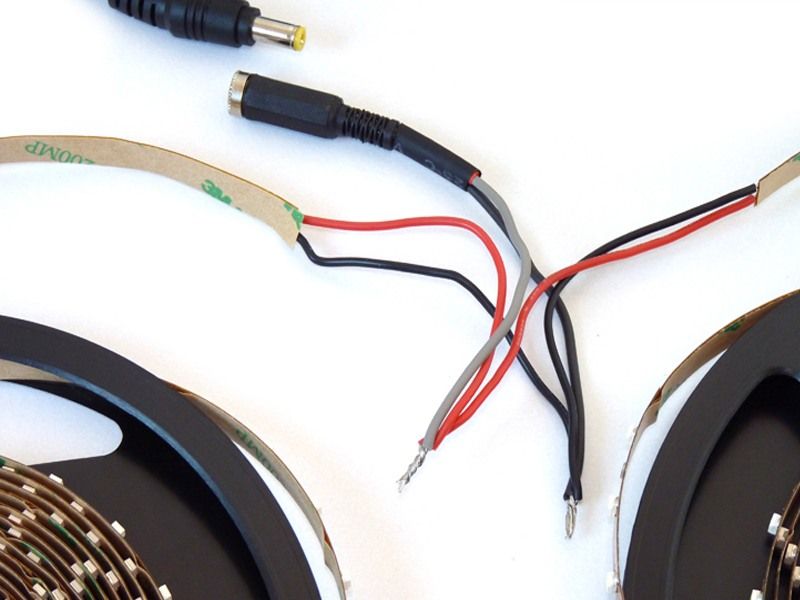 Wie oben beschrieben, verfügen 12 V Netzteil Adapter den Gleichstrom über einen 2,1 mm x 5,5 mm DC Anschluss. Die Polarität der inneren Seite des Anschlusses ist positiv, die äußere Seite ist negativ. Die meisten LED Strips können entweder durch zwei Kabel oder durch einen Molex-Anschluss mit der Stromquelle verbunden werden. Was soll man also tun?