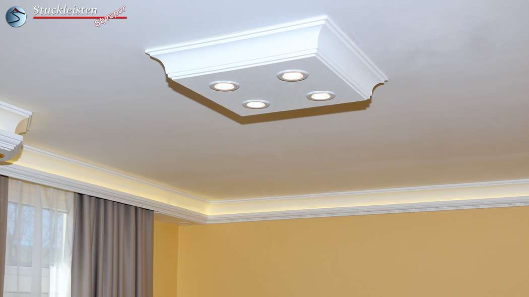 Sparsamkeit bedeutet nicht, dass Sie für eine schöne und moderne Deckenbeleuchtung auf eine dekorative Stuckleuchte verzichten müssen – ganz im Gegenteil! Die breite Formenvielfalt der Stucklampen - Muster- und Größenauswahl - garantiert, dass die LED Deckenbeleuchtung mit Styropor Stuckleisten auf Ihre Bedürfnisse zugeschnitten wird.