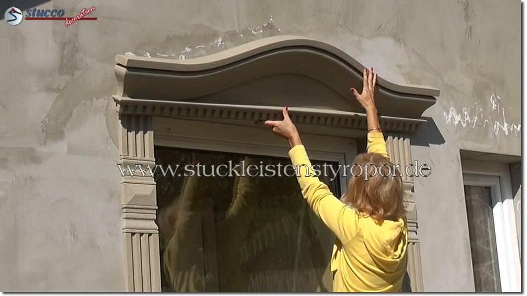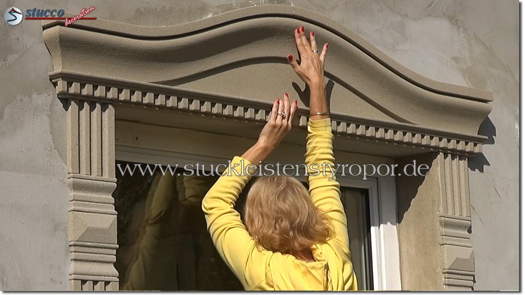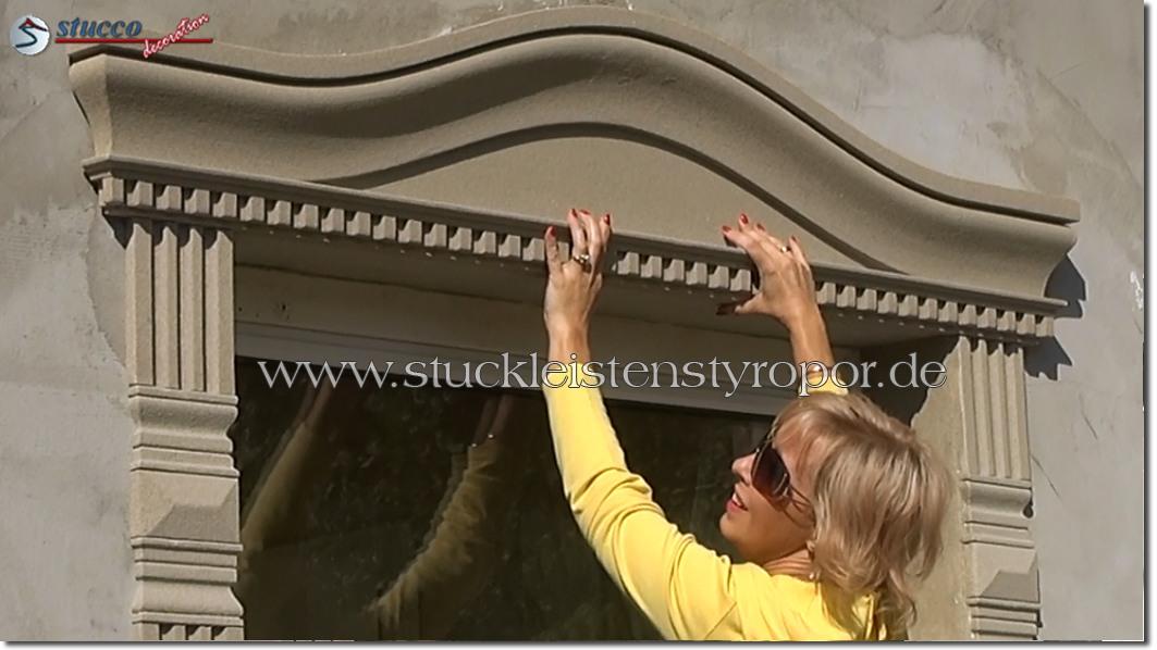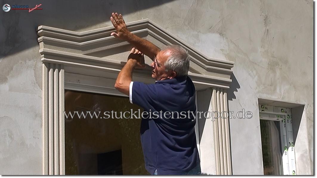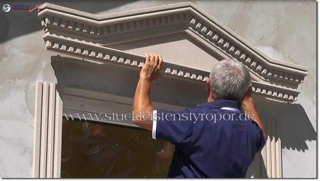 Schauen Sie sich bitte dieses Video zum Anbringen der kompletten Fenstergiebel an. Hier zeigen wir Ihnen nicht nur, mit wie wenig Aufwand und Zeit Sie die kompletten Fenstergiebel sogar selbst montieren können, sondern auch, wie Sie mit ein paar anderen Fassadenelementen eine harmonische Fensterumrandung zaubern können. Die beschichteten Fassadenprofile, Fassadenstuck Zierornamente und kompletten Fensterbänke finden Sie selbstverständlich auch in unserem Fassadenstuck Sortiment.