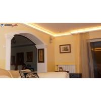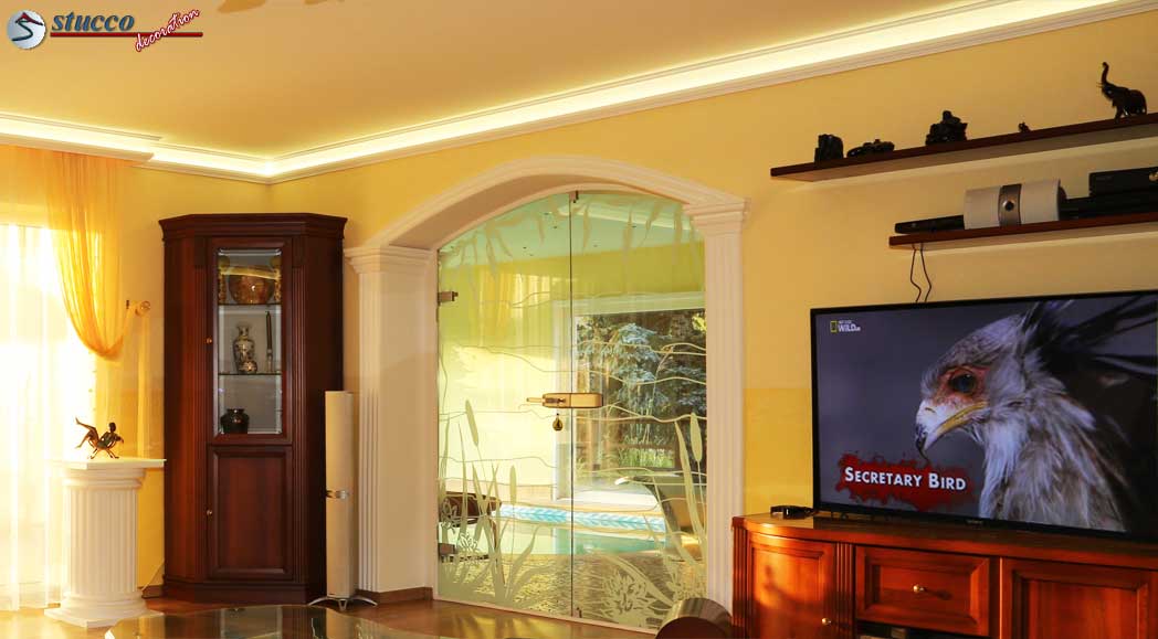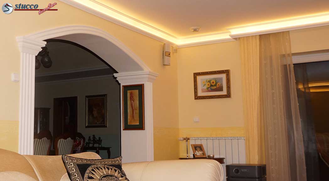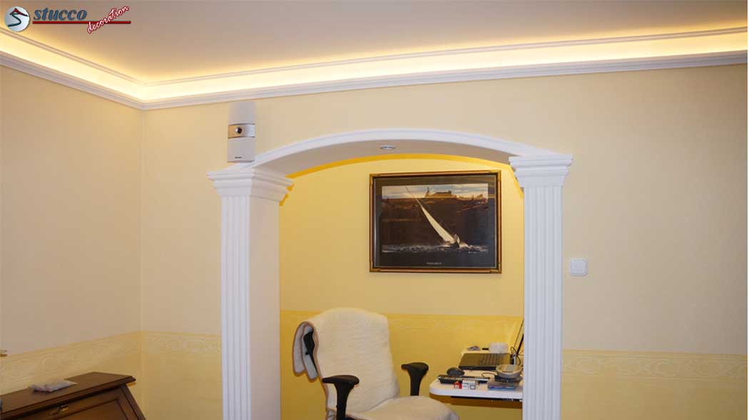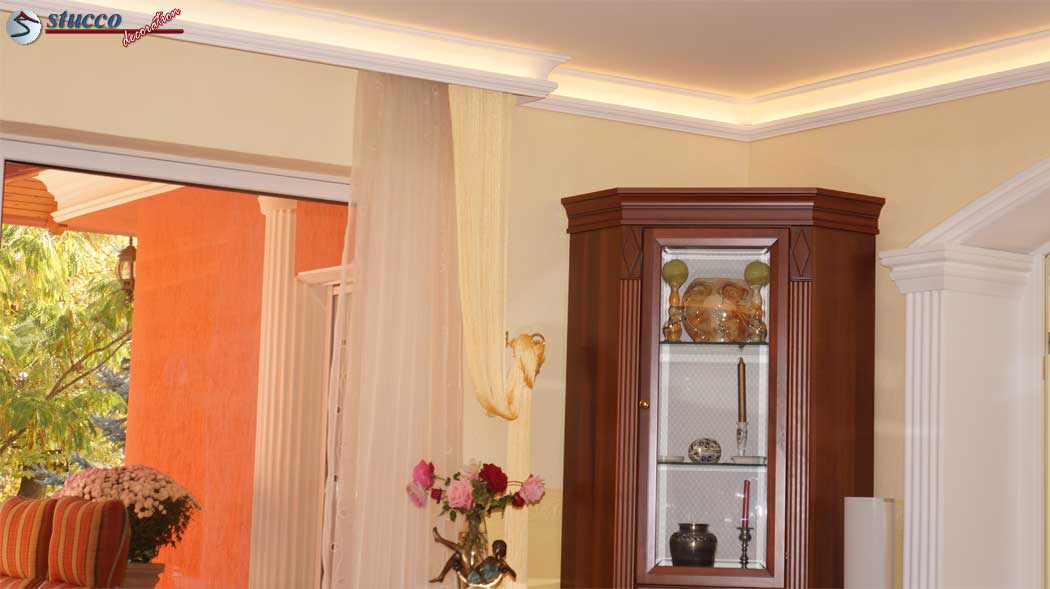 Alle 3 Stuckmustervarianten können Sie in den Übergang von der Wand zur Decke einbauen und damit im gesamten Zimmer eine bezaubernde Hintergrundbeleuchtung entstehen lassen. Das ist die einfachste und kostengünstigste Variante. Leicht können Sie diese handlichen Styroporleisten selbst anbringen und somit die Kosten für einen teuren Stuckateur sparen!