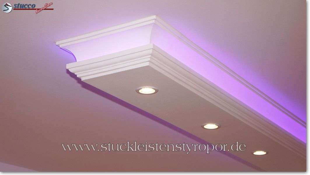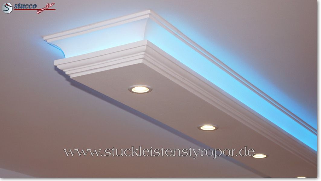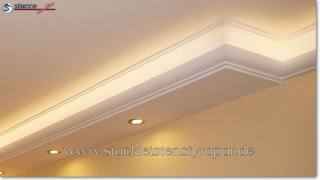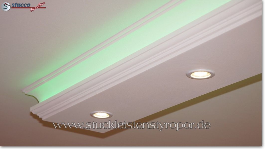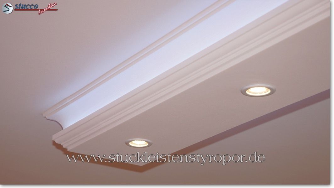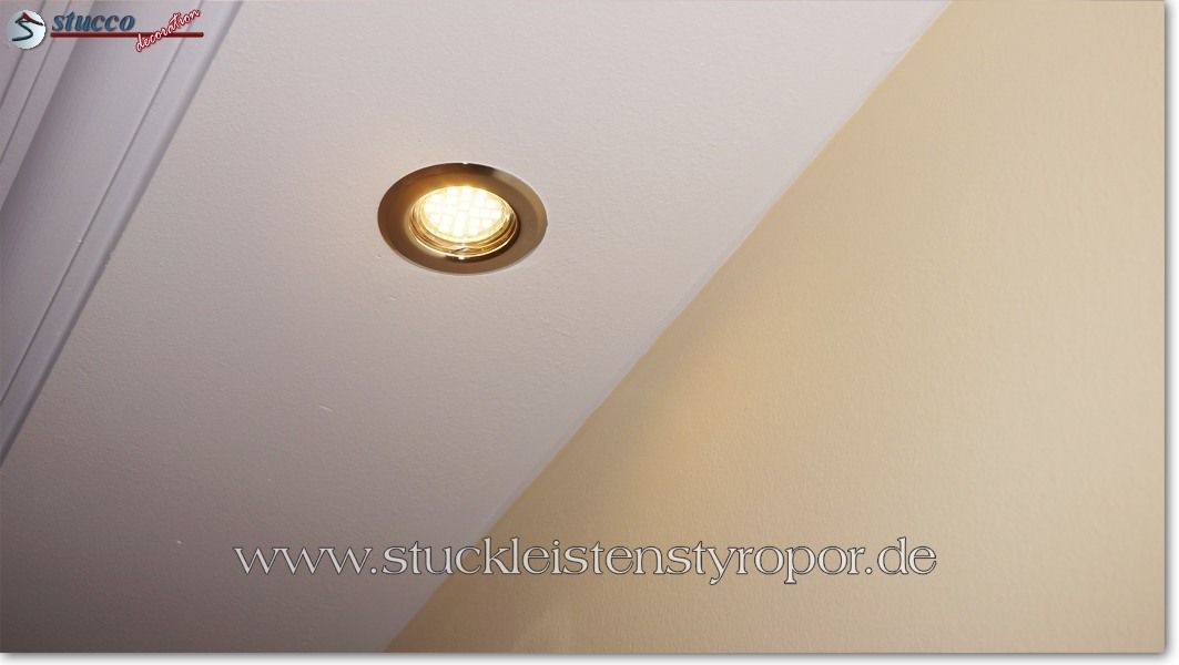 Bitte beachten Sie, dass sowohl die indirekte Beleuchtung als auch die direkte Beleuchtung von qualifiziertem Fachpersonal montiert werden soll. Nur LED Strips und LED Deckenlampen sind wegen der geringen Wärmeerzeugung geignet, in Styropor Stuckleisten eingebaut zu werden. Halogen Leuchtmittel sind dafür leider NICHT geeignet.