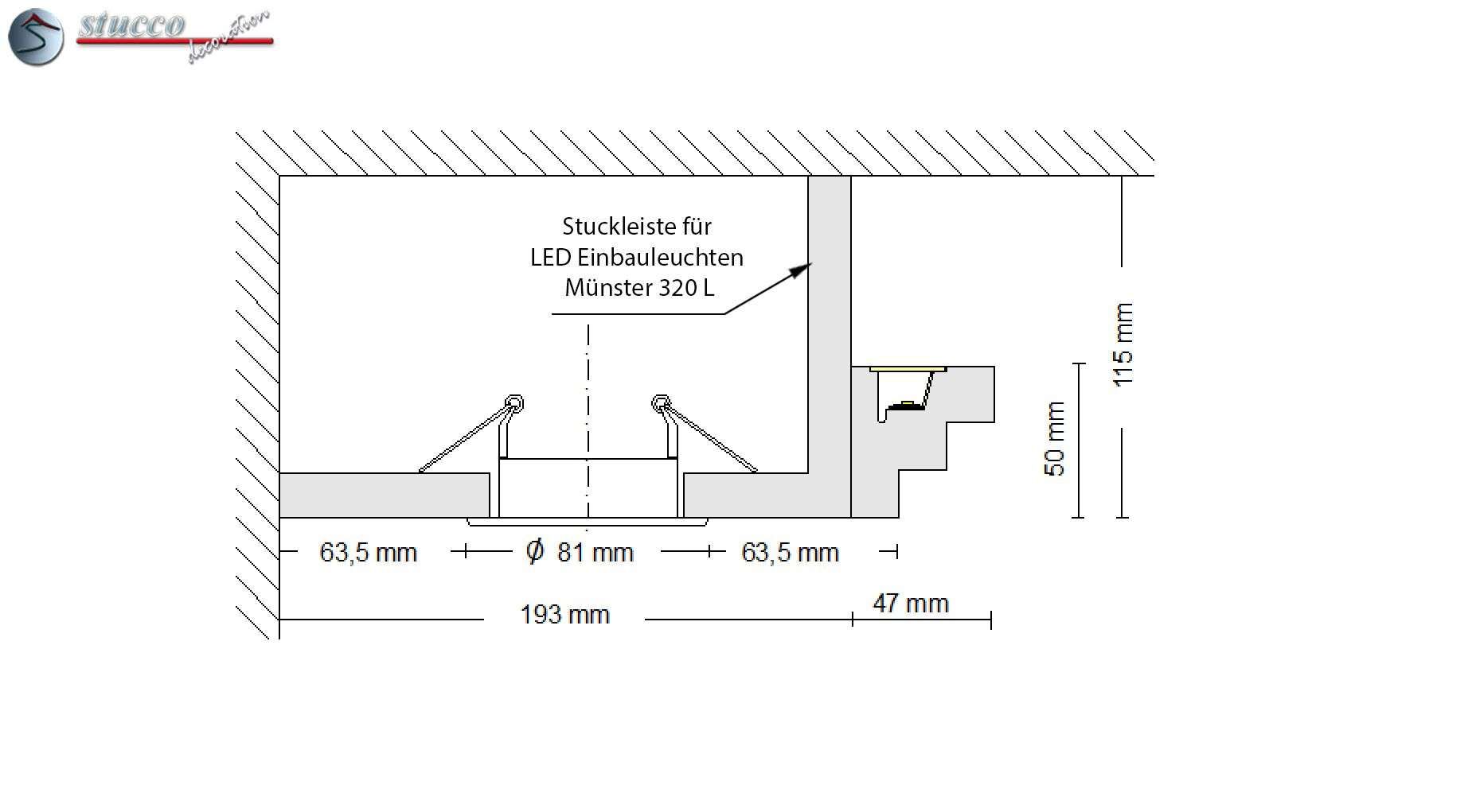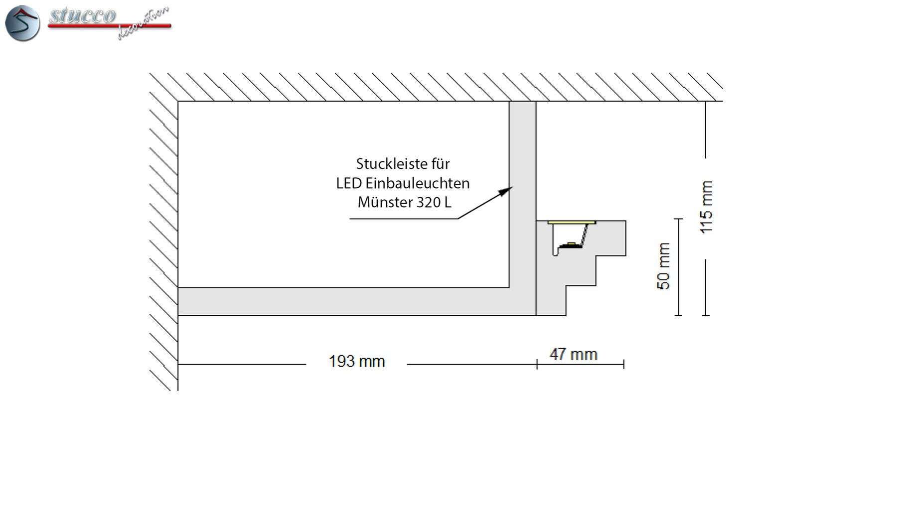 Möchten Sie die indirekte Wandbeleuchtung auch mit hellem, direktem Licht von LED Spots kombinieren? Auch kein Problem! Die Stuckleiste Erfurt 208 Plexi Plus für indirekte Beleuchtung lässt sich ohne großen Aufwand mit der Stuckleiste für LED Einbauleuchten Münster 320 L kombinieren. In die Grundplatte der L-förmigen Stuckleiste Münster 320 L können die energiesparenden LED Spots eingebaut werden. Weiterhin eignet sich der Hohlraum im Inneren des L-Profils zum Platzieren der Elektronik der LED Beleuchtung. Hier steht genug Platz für das Netzteil und den Dimmer zur Verfügung. Werden diese Elektroteile in der Stuckleiste versteckt, empfehlen wir Ihnen, auch Lüftungsgitter mit zu bestellen und an der entsprechenden Stelle in die Stuckleiste einzubauen. So sorgen Sie für die erforderliche Lüftung und Kühlung.