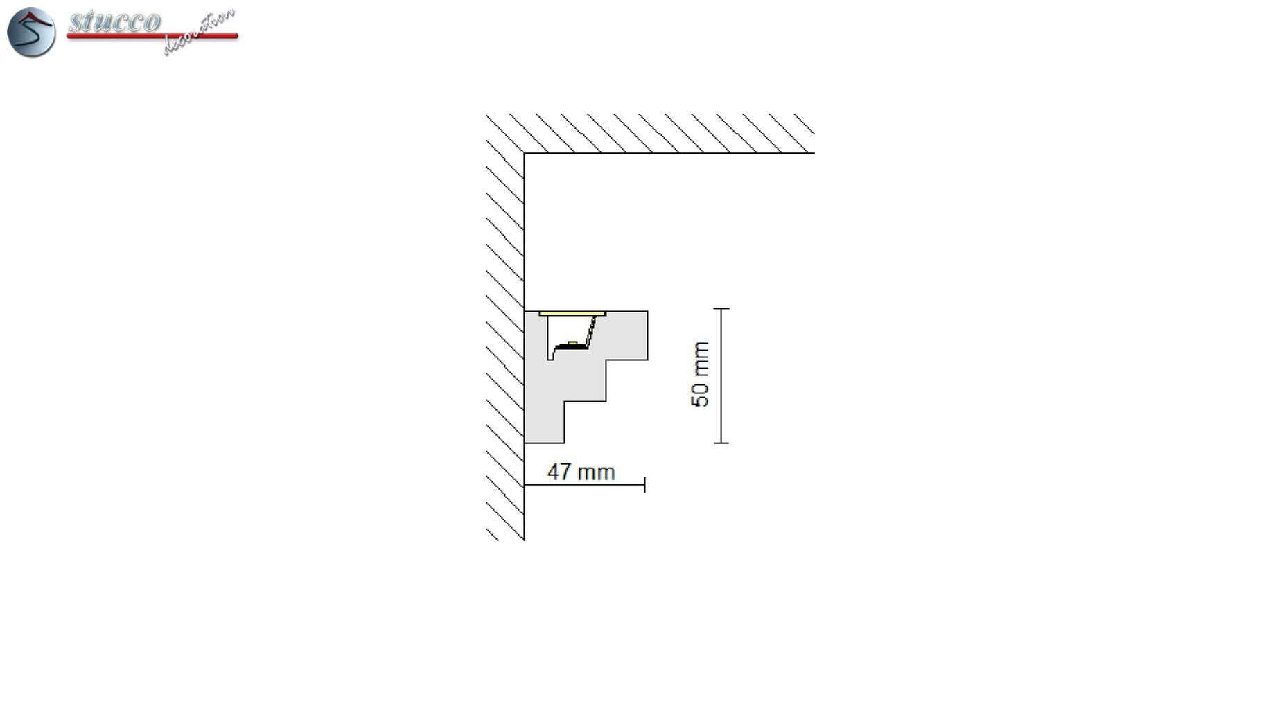 Die Stuckleiste Erfurt 208 Plexi Plus für indirekte Deckenbeleuchtung ist eine praktische und dekorative Wandleiste. In die innere Aussparung der Zierleiste können neben den LED Reflektorstreifen aus Aluminium und den LED Strips auch die Plexistreifen als Staubschutz für die LED Strips eingebaut werden.