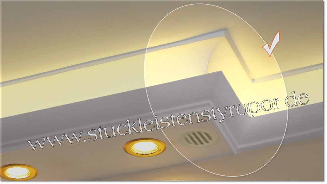 Ausbau energiesparender LED Beleuchtung - einfach, aber stilvoll! Da LED Streifen kaum Wärme erzeugen, sind sie perfekt für indirekte Beleuchtung mit Styropor Stuckleisten geeignet. Wussten Sie, dass LEDs eine Lebensdauer von mindestens 30.000 Stunden haben? Lange Lebensdauer, minimaler Stromverbrauch und tolle Farben - so viele Vorteile auf einmal!