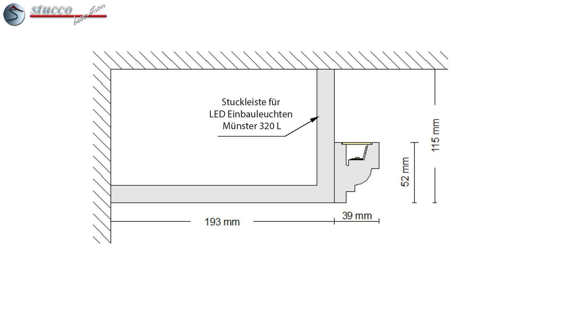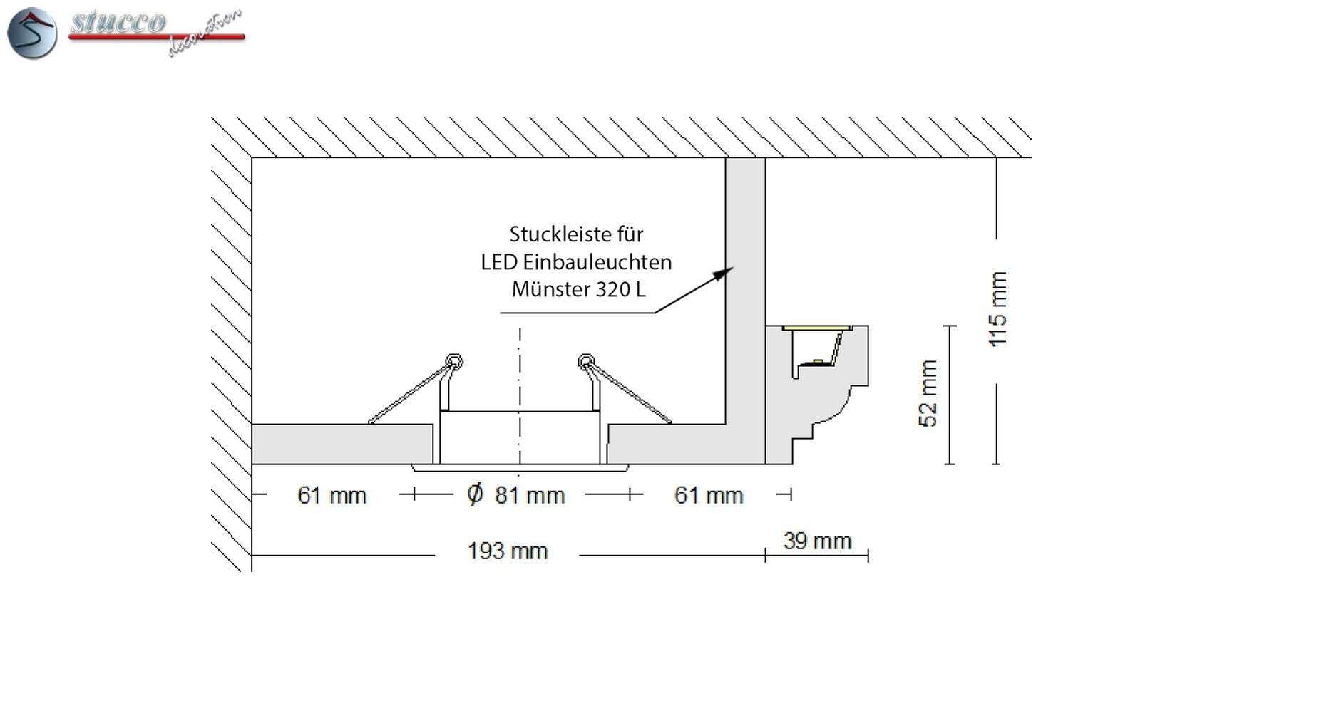 Möchten Sie die indirekte Wandbeleuchtung auch mit hellem, direktem Licht von LED Spots kombinieren? Auch kein Problem! Die Stuckleiste Berlin 201 für indirekte Wandbeleuchtung lässt sich ohne großen Aufwand mit der Stuckleiste für LED Einbauleuchten Münster 320 L kombinieren. In die Grundplatte der L-förmigen Stuckleiste Münster 320 L können die energiesparenden LED Spots eingebaut werden. Weiterhin eignet sich der Hohlraum im Inneren des L-Profils zum Platzieren der Elektronik der LED Beleuchtung. Hier steht genug Platz für das Netzteil und den Dimmer zur Verfügung. Werden diese Elektroteile in der Stuckleiste versteckt, empfehlen wir Ihnen, auch Lüftungsgitter mit zu bestellen und an der entsprechenden Stelle in die Stuckleiste einzubauen. So sorgen Sie für die erforderliche Lüftung und Kühlung.